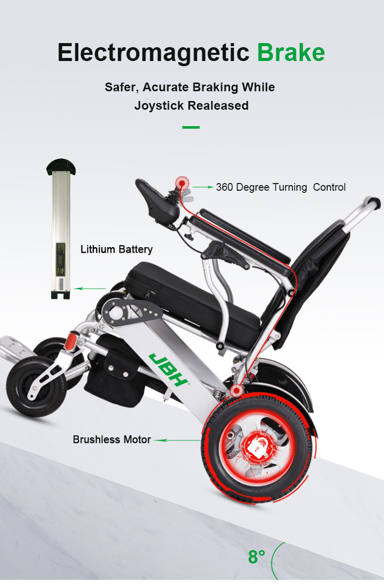 1. A cadeira de rodas elétrica pode estar dobrando ou se desenrolando em um segundo, fácil de transportar como bagagem no avião ou no trem.